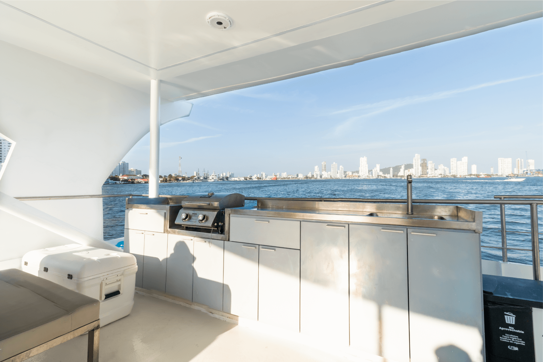 Los alimentos y bebidas no están incluidos en el precio de renta de la embarcación, pero contamos con una excelente opción para fondear  en una isla privada donde podrán almorzar por un costo adicional. (Pueden consultar la carta del restaurante antes de realizar la reserva.)